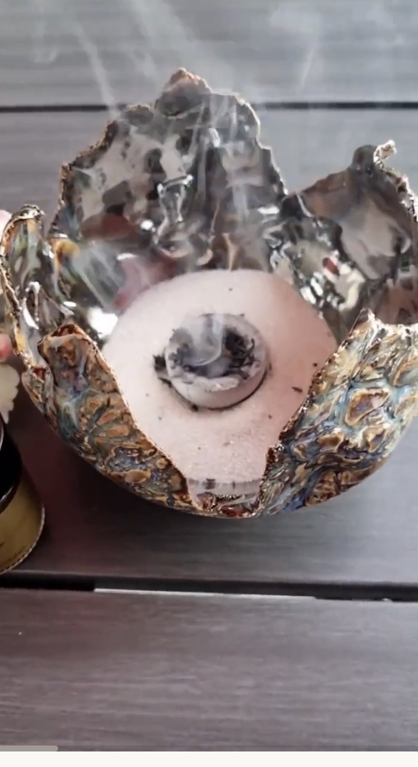 Meine getöpferte Keramik Räucherschale kann auch zum Räuchern mit Kohle verwendet werden >>>Die Räucherschale für Kräuter. Weil sie bei über 1200grad gebrannt wurde und daher hitzebeständig ist.