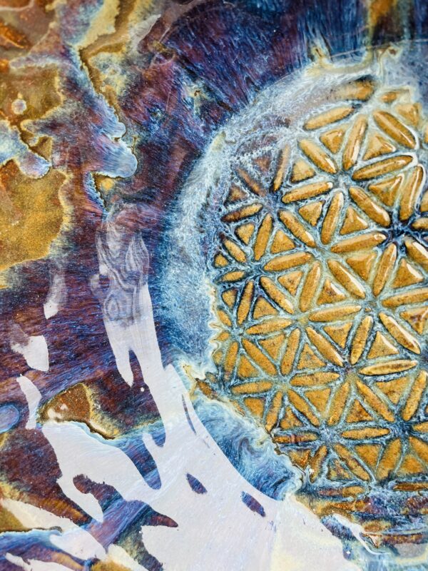 Sehr schöne von mir handgetöpferte große Obstschale Keramik im spirituellem Design.