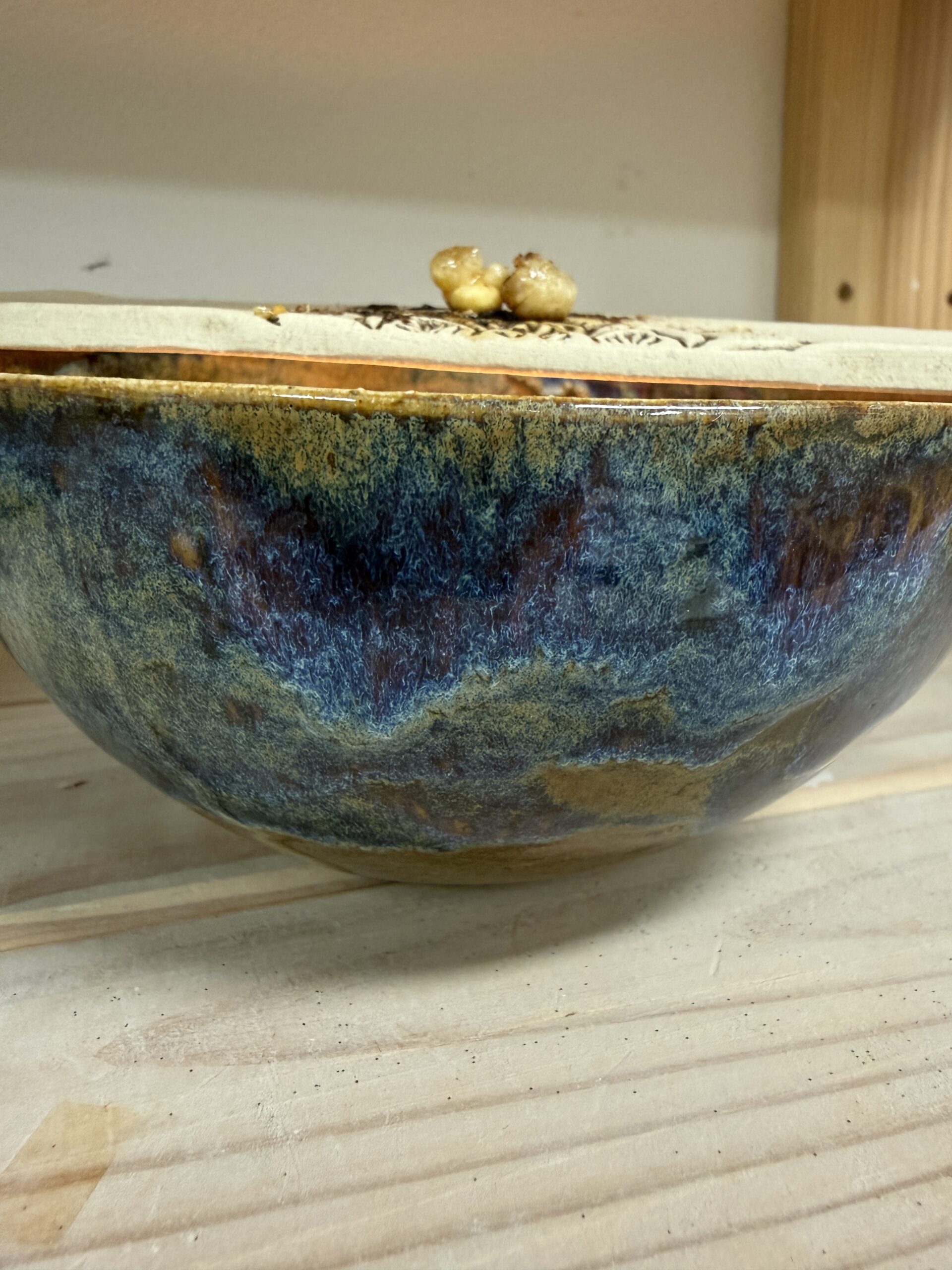 Jede Schale entsteht in liebevoller Handarbeit – geformt, glasiert und gebrannt – wodurch ein echtes Unikat entsteht, das mit leuchtenden Farbverläufen in Blau, Lila und Grün verzaubert.
